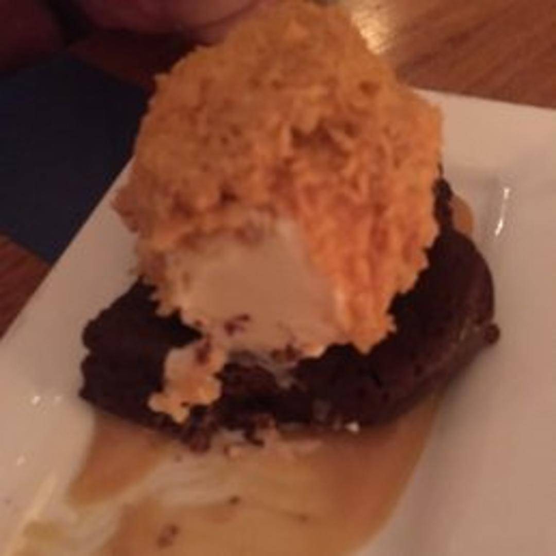 A rich and decadent chocolate torte, featuring a dense, fudgy texture with intense cocoa flavor. This elegant dessert offers a luxurious finish to any meal, often served with a delicate garnish.