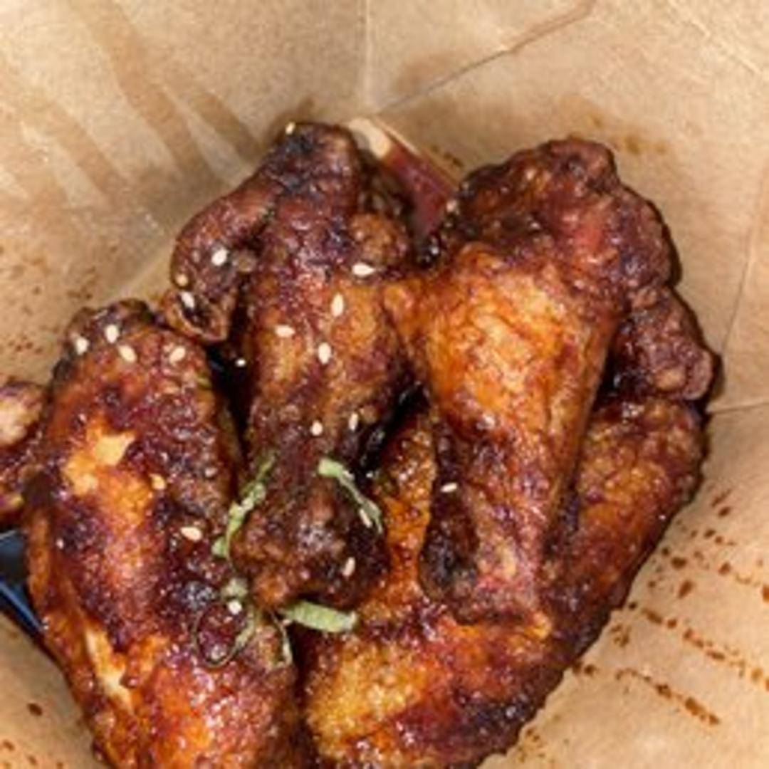 Crispy fried chicken wings coated in a sweet and spicy chili sauce, offering a delightful balance of flavors and textures.