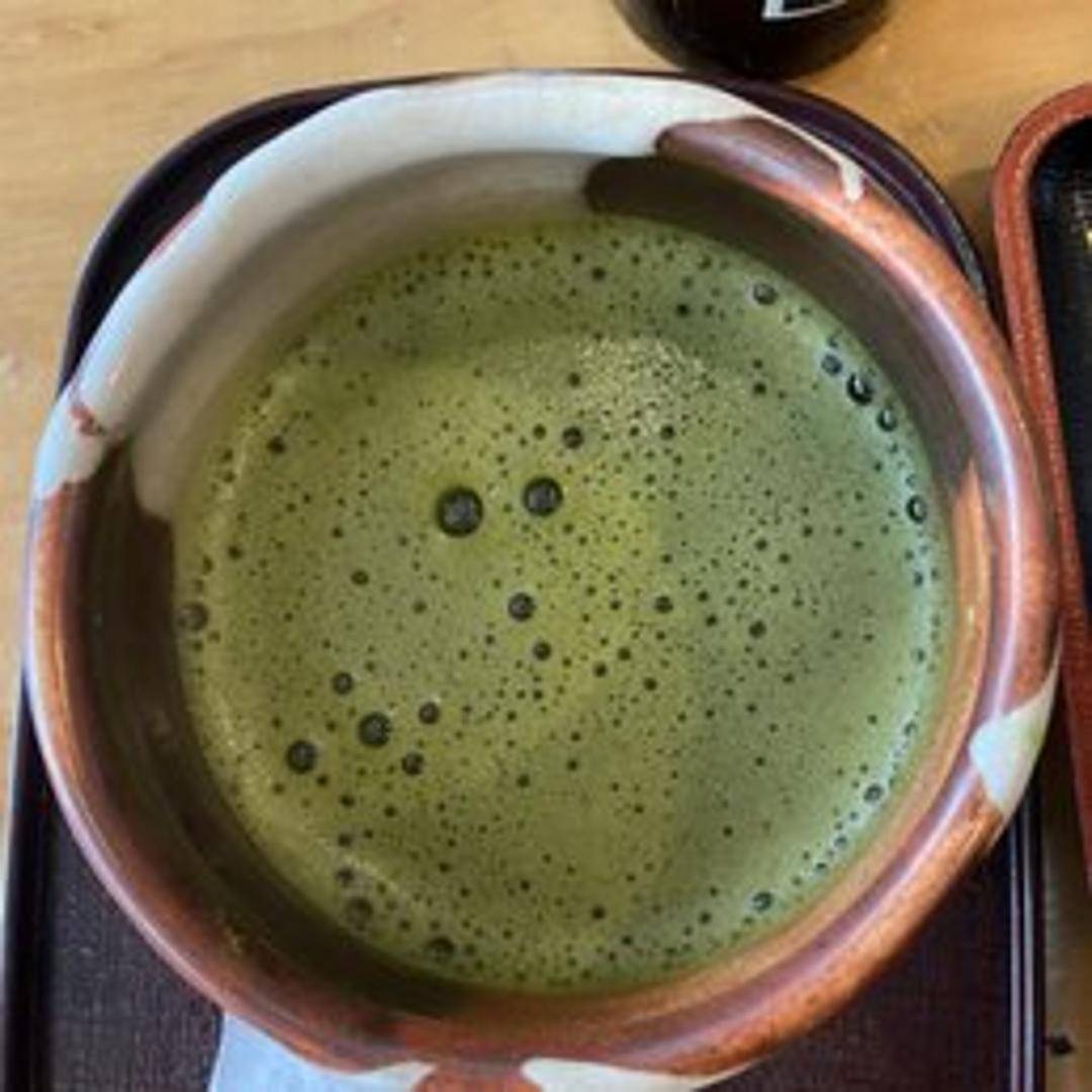 Finely ground green tea powder whisked with hot water, creating a smooth and slightly bitter, yet refreshing, traditional Japanese tea.