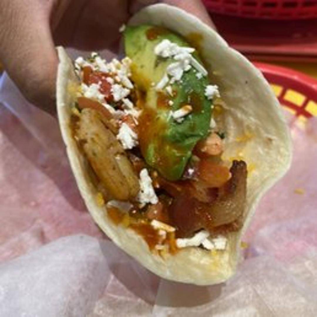 Grilled or tempura fried shrimp topped with a special spicy sauce, shredded purple cabbage, pico de gallo, avocado slices, and a sprinkle of feta cheese. Served on your choice of tortilla.