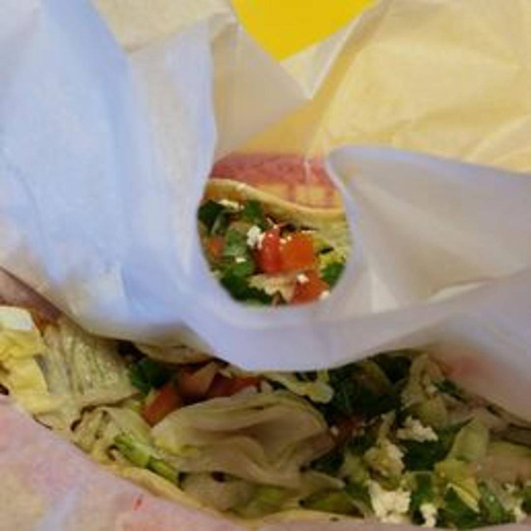 Lightly battered and fried fish (usually tilapia), topped with shredded cabbage, white sauce, pico de gallo, and feta cheese. Served on your choice of tortilla.