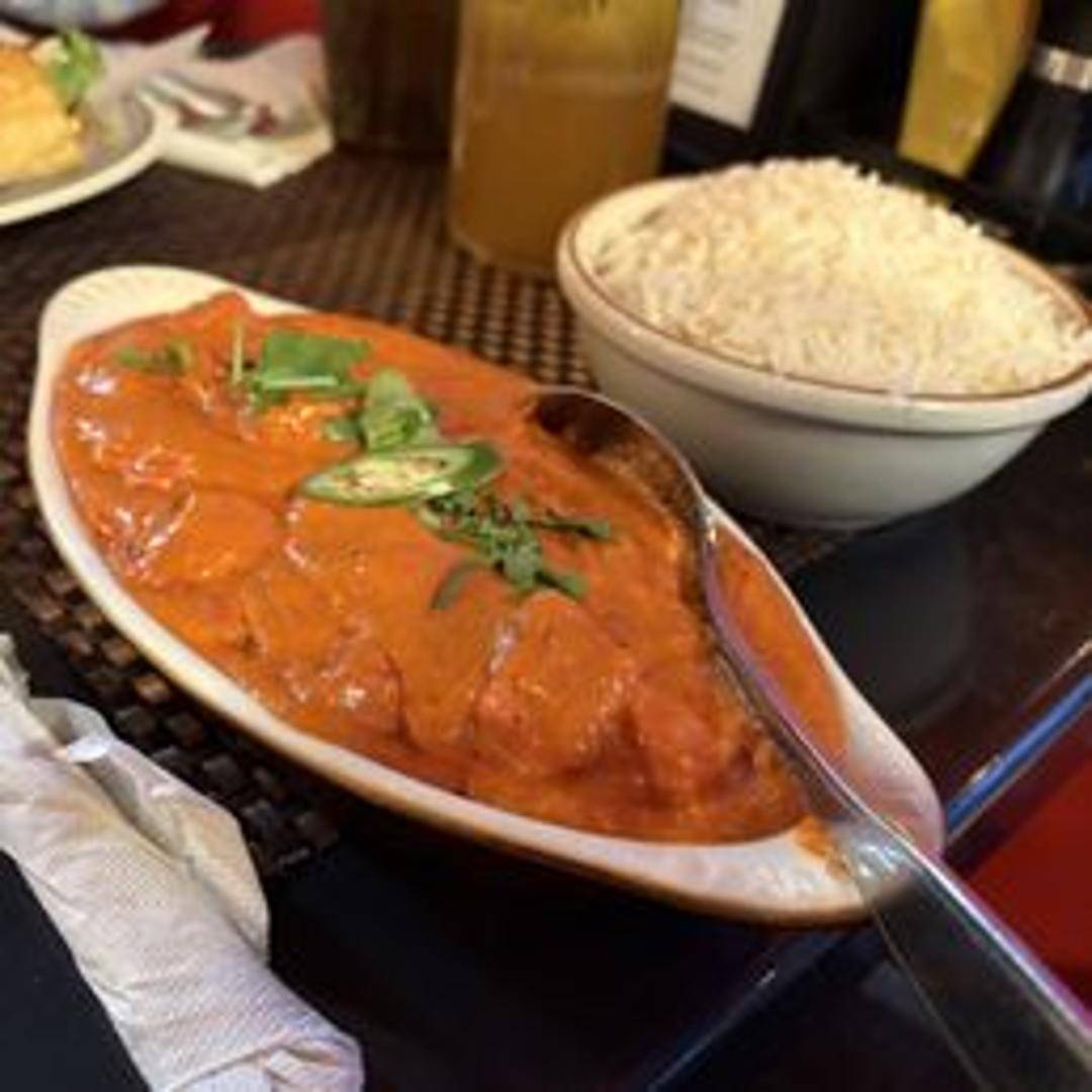 Tender pieces of marinated chicken grilled in a tandoor and simmered in a creamy and flavorful tomato-based sauce infused with traditional Tikka Masala spices. Served with your choice of rice or naan.