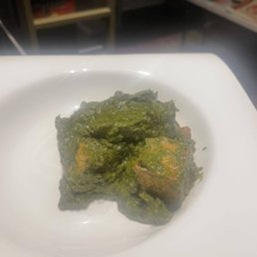 A creamy and flavorful vegetarian dish featuring cubes of Indian cheese (paneer) cooked in a spinach-based sauce (saag) with ginger, garlic, and spices. Served with your choice of rice or naan.