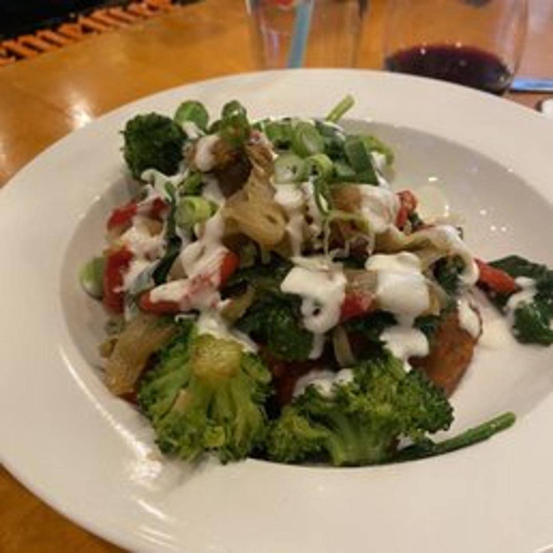 Experience a traditional Irish delight with a vegetarian twist. Our Veggie Boxty features a savory, crispy potato pancake, griddled to perfection, and generously filled with a vibrant medley of fresh, seasonal roasted vegetables. It's a comforting and flavorful dish that brings a taste of the Emerald Isle to your plate.