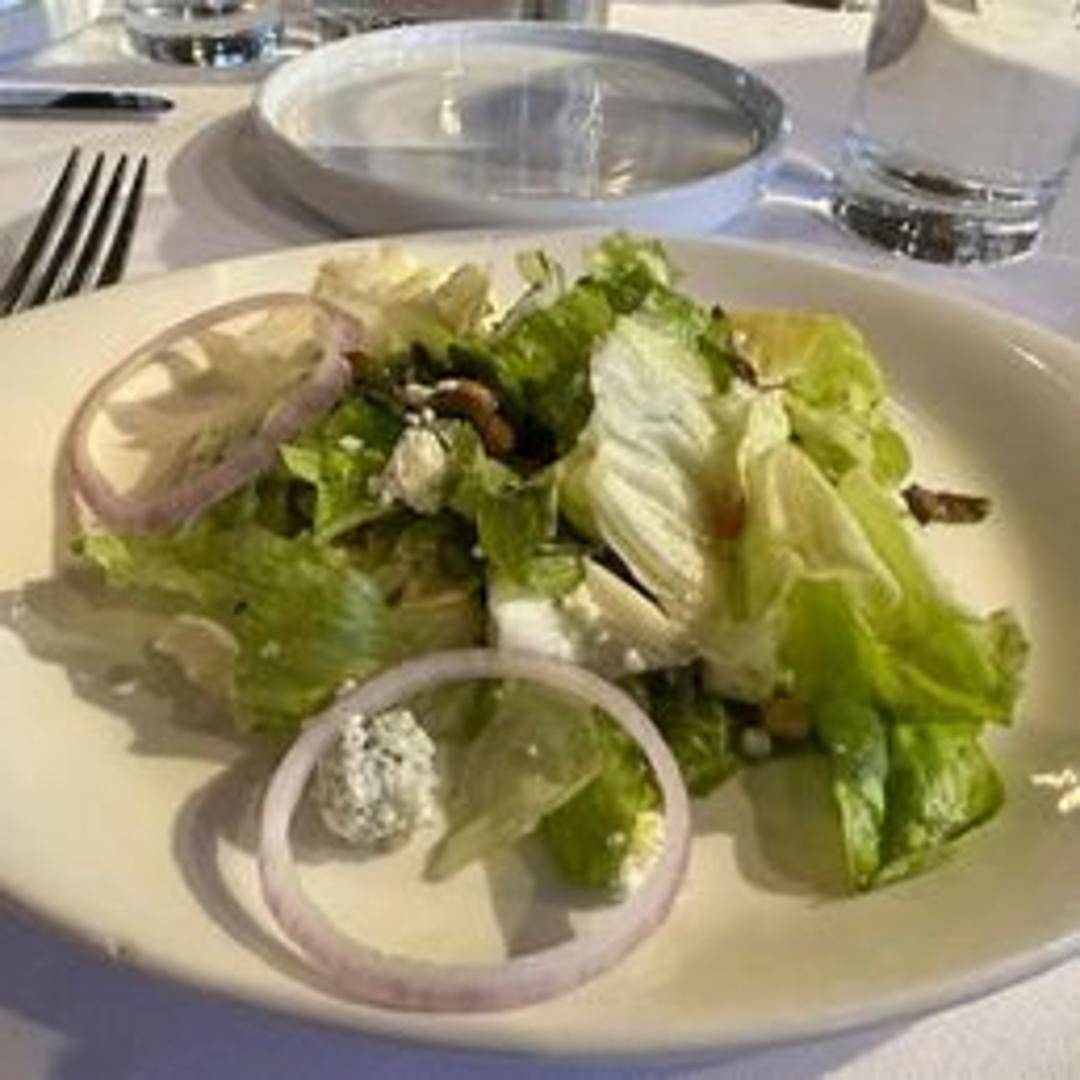 A refreshing salad featuring mixed greens, crumbled goat cheese, dried cranberries, candied walnuts, and sliced red onion. Dressed with a light and tangy balsamic vinaigrette.