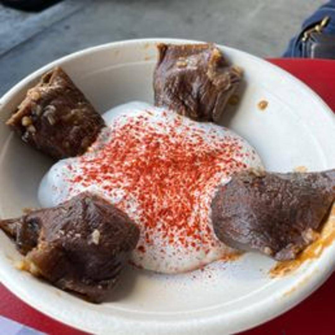 Delicate grape leaves stuffed with a flavorful mixture of sun-dried eggplant, rice, herbs, and spices. These dolmas are a Mediterranean delight, offering a savory and aromatic experience.