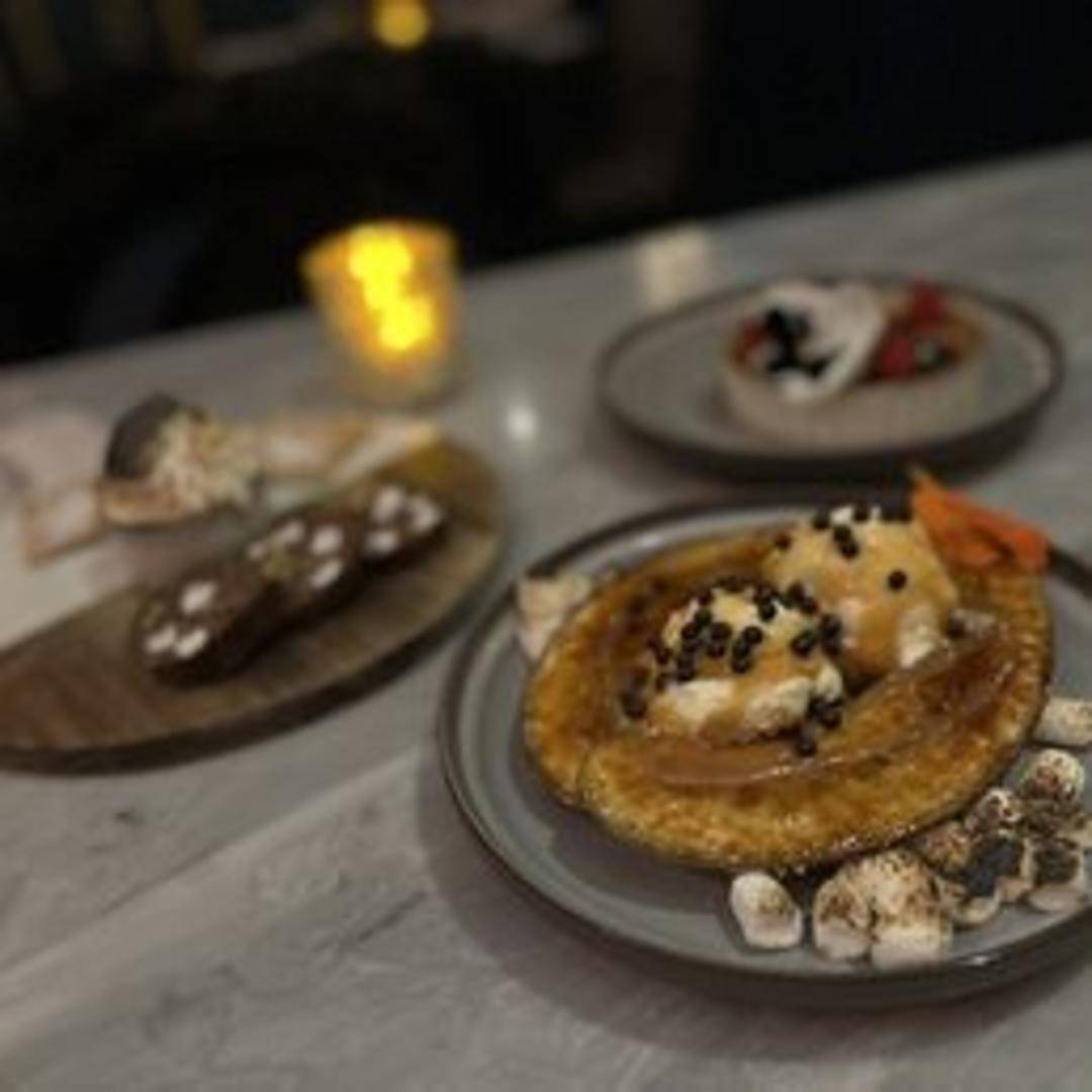 A classic banana split elevated to Gatsby's standards. Features a ripe banana sliced lengthwise, topped with scoops of premium vanilla, chocolate, and strawberry ice cream. Drizzled with hot fudge, caramel, and strawberry sauce, then crowned with whipped cream, chopped nuts, and maraschino cherries. A truly decadent and shareable dessert.