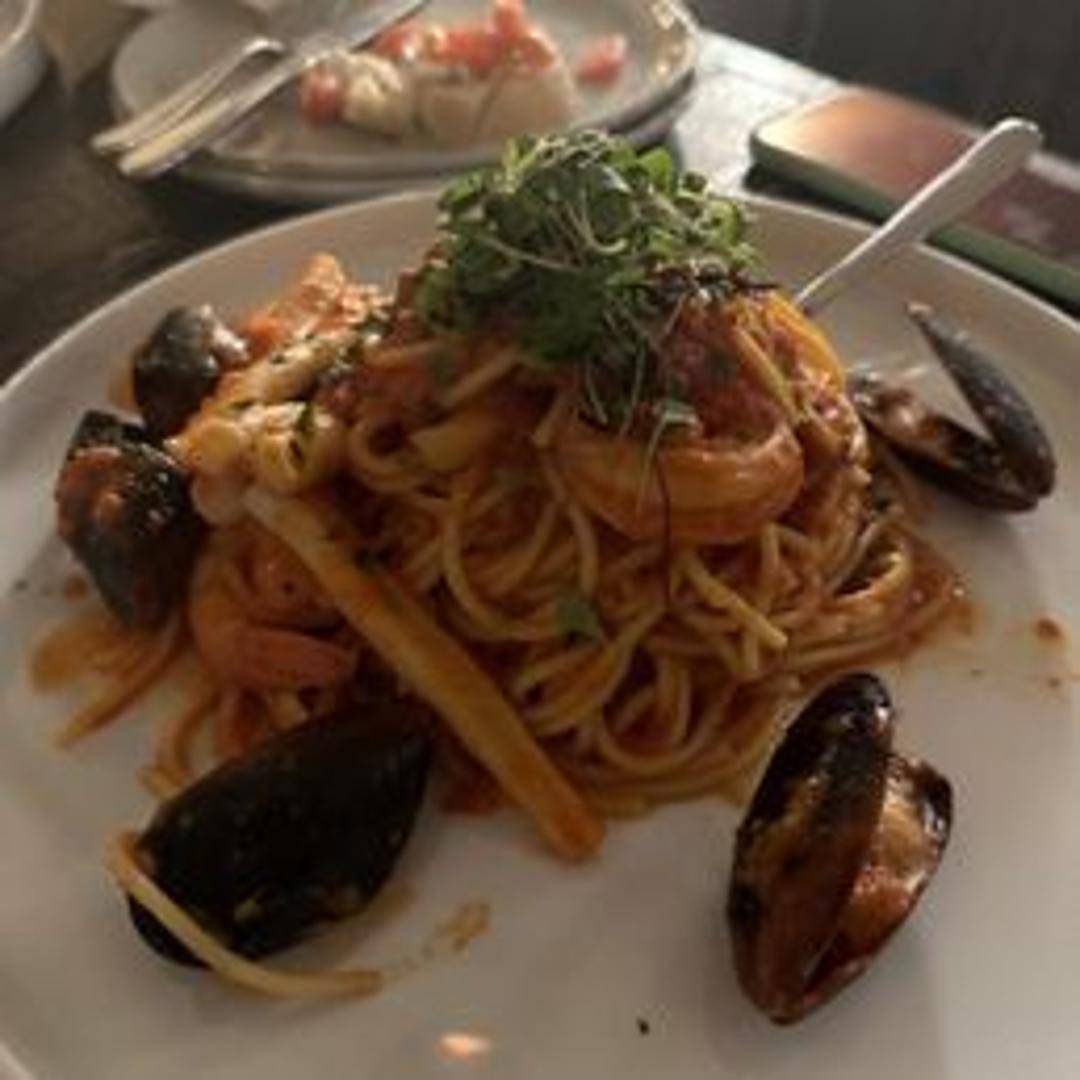 A medley of fresh seafood, including [mention specific seafood if known, e.g., mussels, clams, shrimp, and calamari] simmered in a light tomato-based sauce. Served over [mention base, e.g., linguine or spaghetti].
