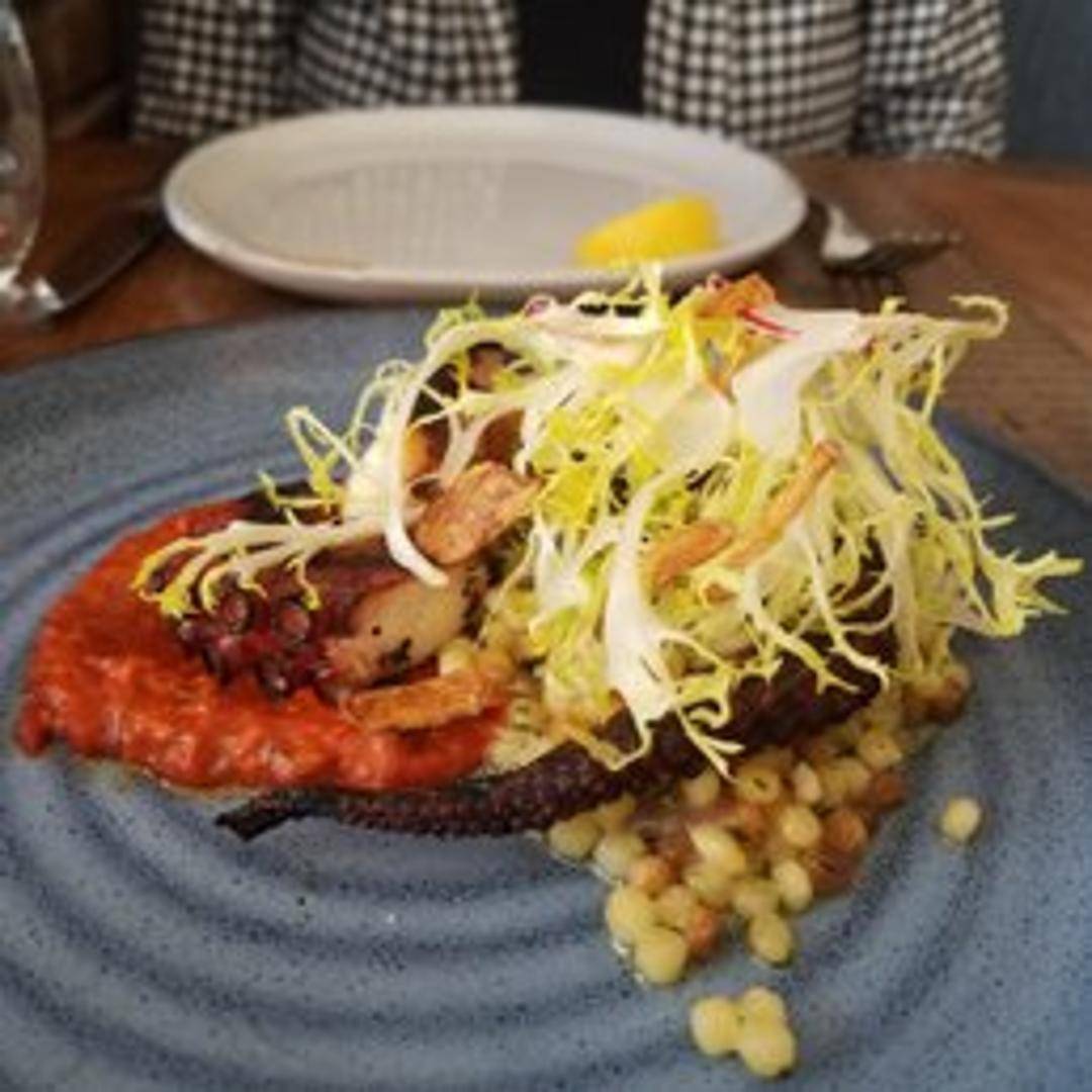 Tender octopus, expertly charred to perfection. Served with [mention accompanying elements if known, e.g., a lemon vinaigrette, potatoes, and capers].