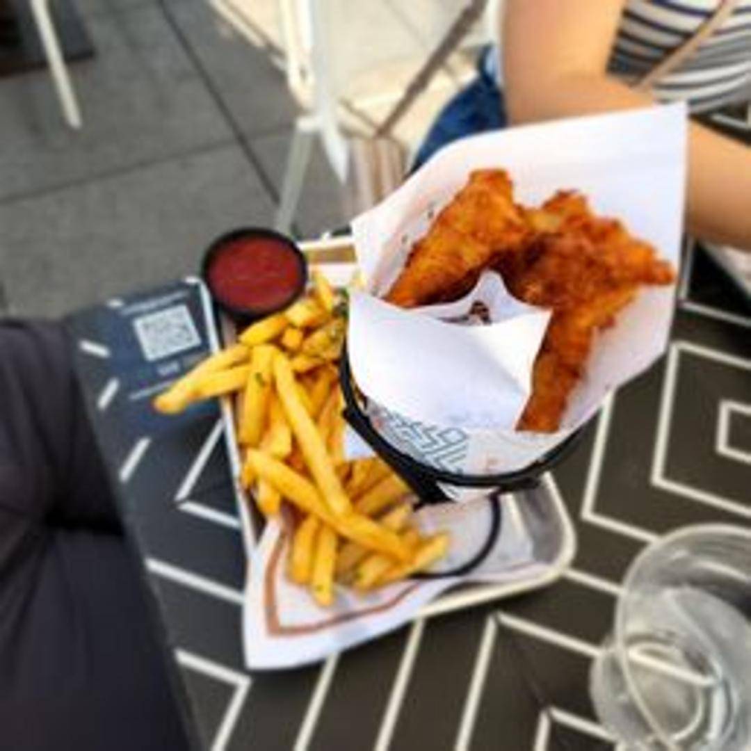 Crispy, beer-battered fish fillets served with golden-brown french fries, tartar sauce, and lemon wedges. A classic pub favorite.