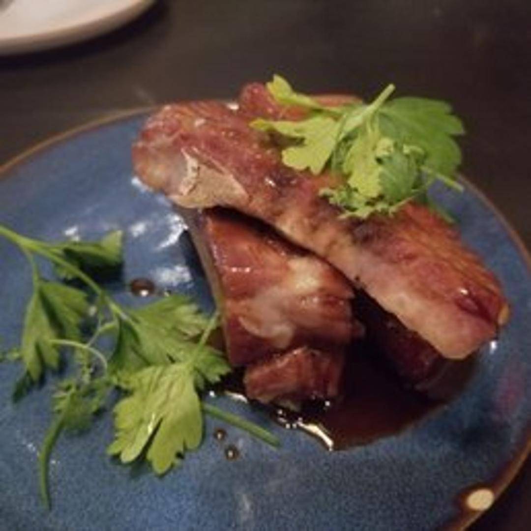 Tender spare ribs glazed with a rich and flavorful sherry reduction, offering a sweet and savory balance.
