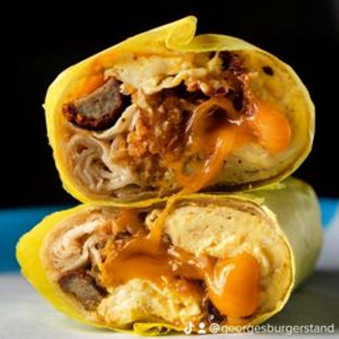 A warm flour tortilla filled with scrambled eggs, melted cheddar cheese, crispy potatoes, and your choice of bacon, sausage, or chorizo. Served with a side of salsa.