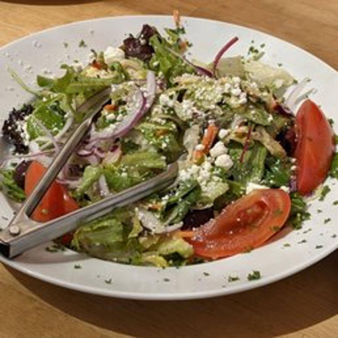 A refreshing salad made with tomatoes, cucumbers, onions, bell peppers, olives, and feta cheese, dressed with olive oil and oregano.