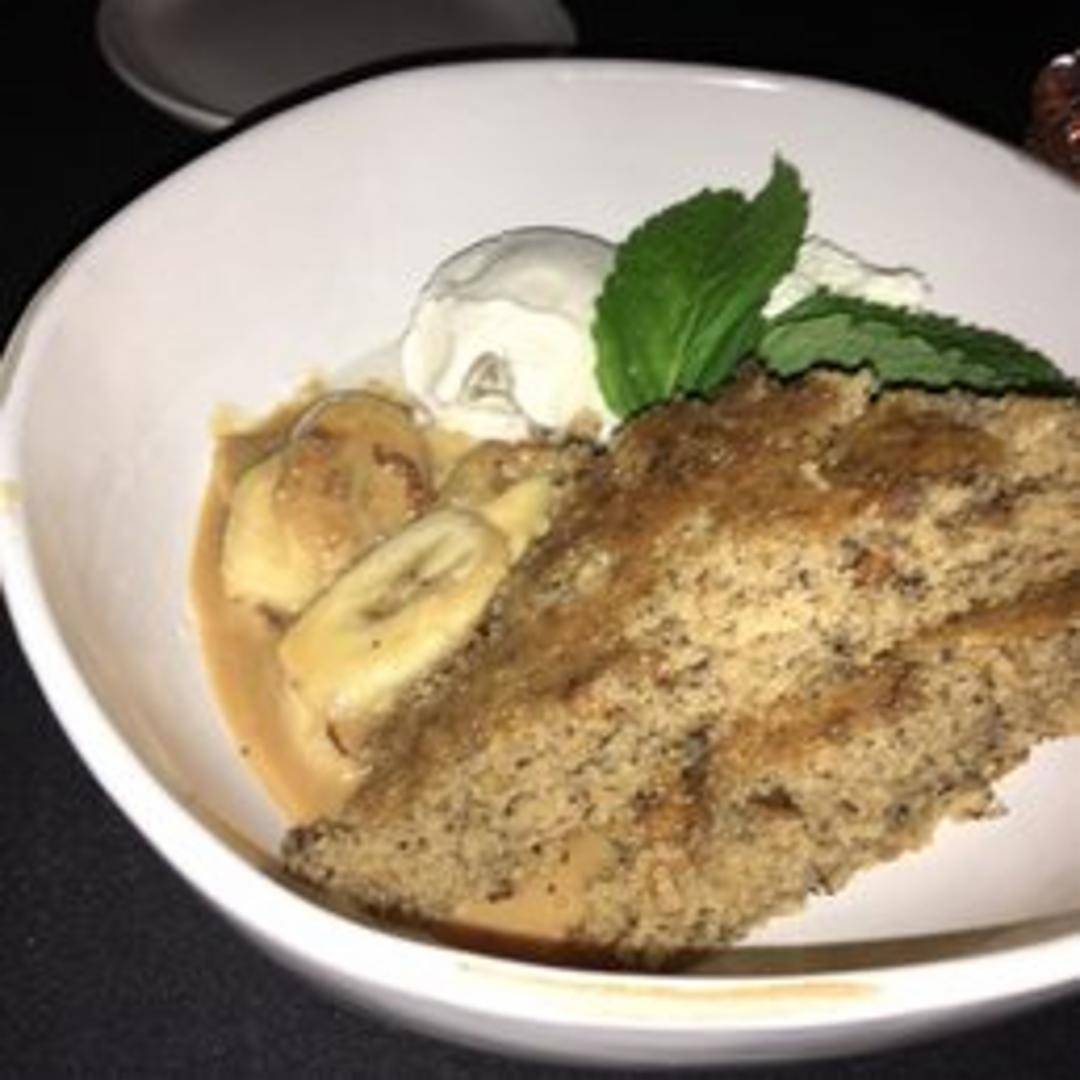 Caramelized bananas flambéed in dark rum with brown sugar and cinnamon, served warm with vanilla ice cream.