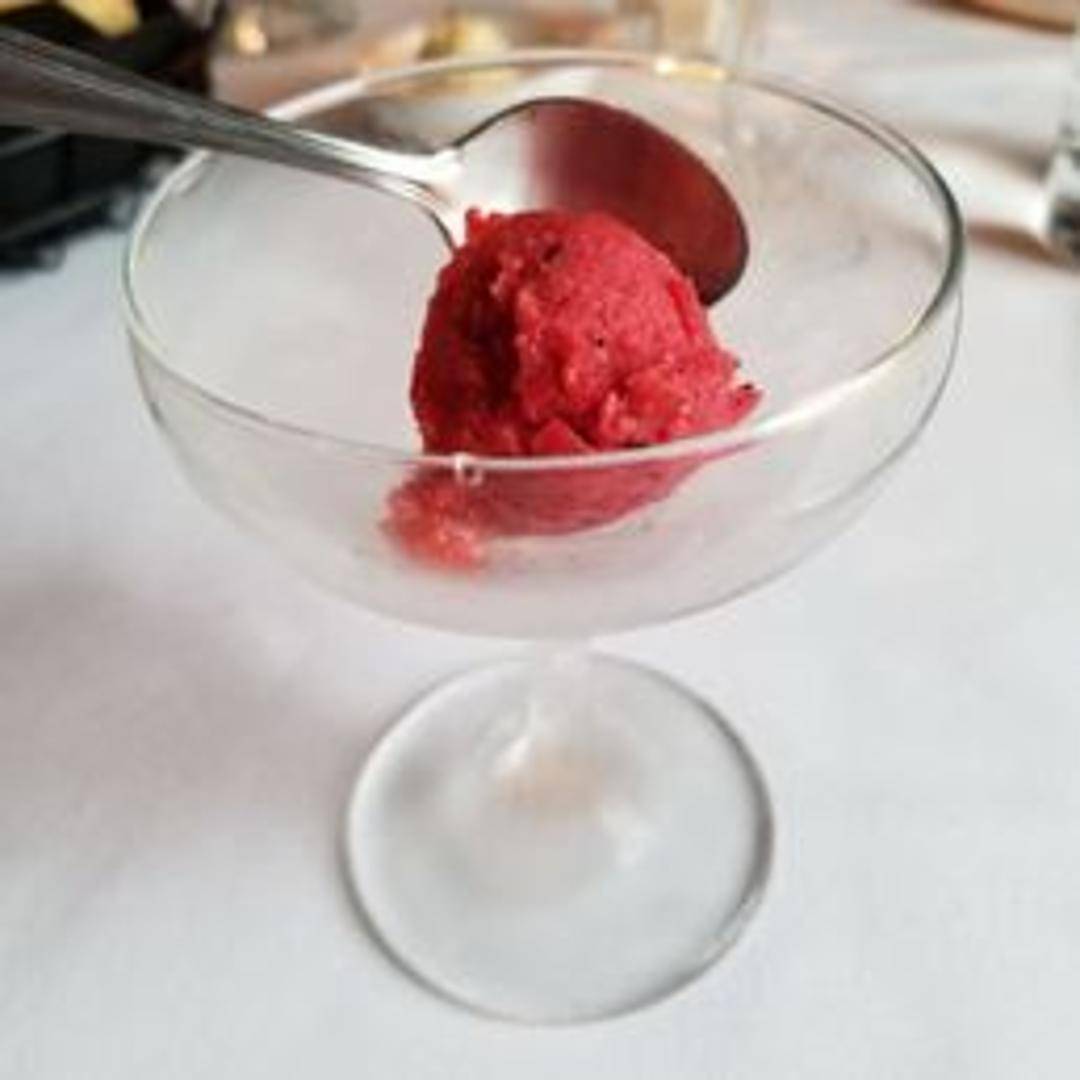 A refreshing and tart sorbet made in-house with fresh raspberries. Light, fruity, and perfect as a palate cleanser or a light dessert.