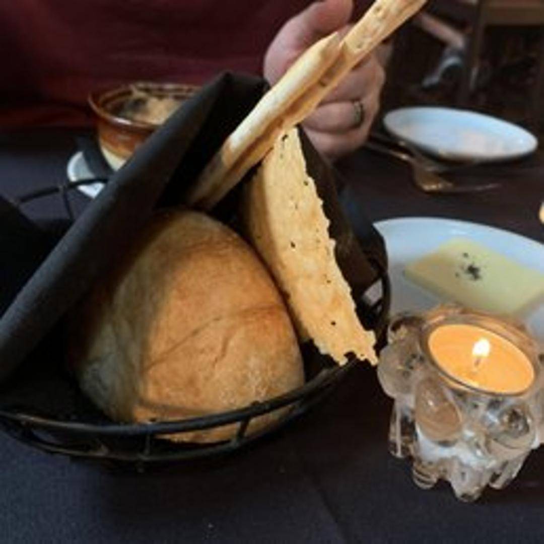 A selection of freshly baked breads, served warm. Includes a variety of textures and flavors, complemented by house-made butter and/or dipping oil.