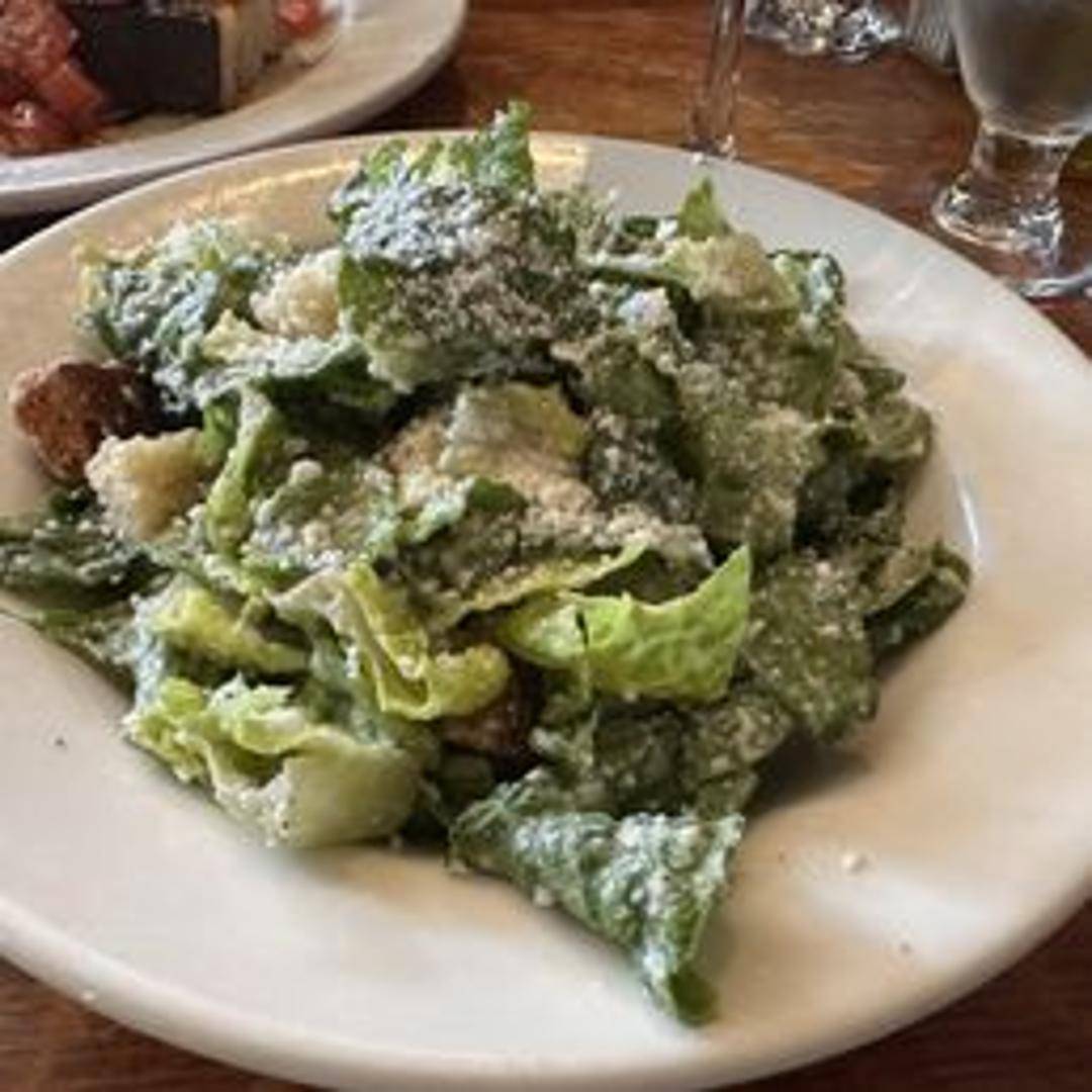 Crisp romaine lettuce tossed with creamy Caesar dressing, garlic croutons, and grated Parmesan cheese.