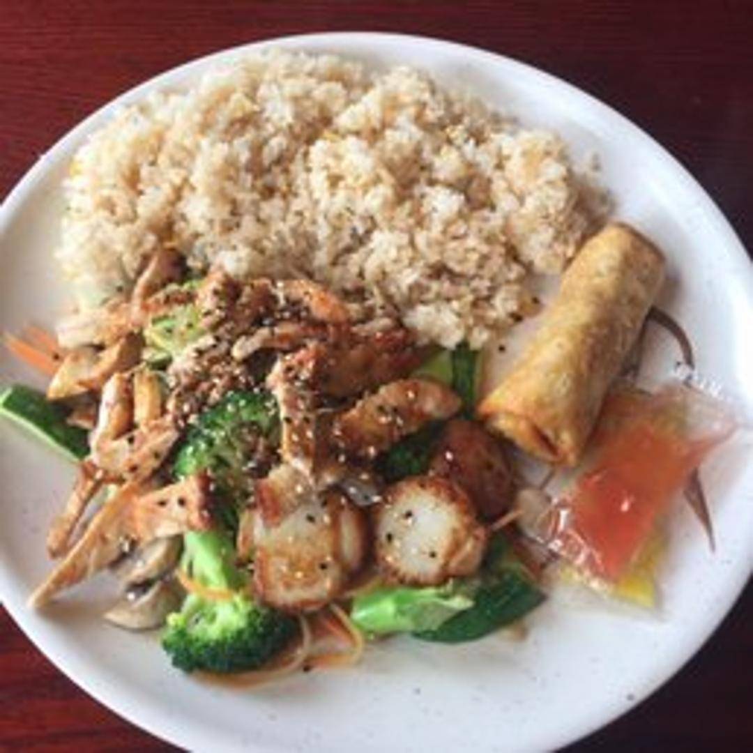 Succulent pieces of chicken, expertly grilled or pan-fried, generously coated in a rich and glossy sweet-savory teriyaki glaze. This classic dish is typically garnished with a sprinkle of sesame seeds and fresh scallions, offering a delightful balance of flavors and textures.