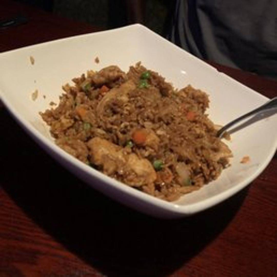 A comforting classic, this dish features fluffy rice expertly stir-fried with tender pieces of diced chicken, scrambled egg, green peas, carrots, and finely chopped onions. Seasoned with soy sauce and other savory ingredients, it's cooked quickly over high heat to achieve a perfect, slightly smoky flavor.