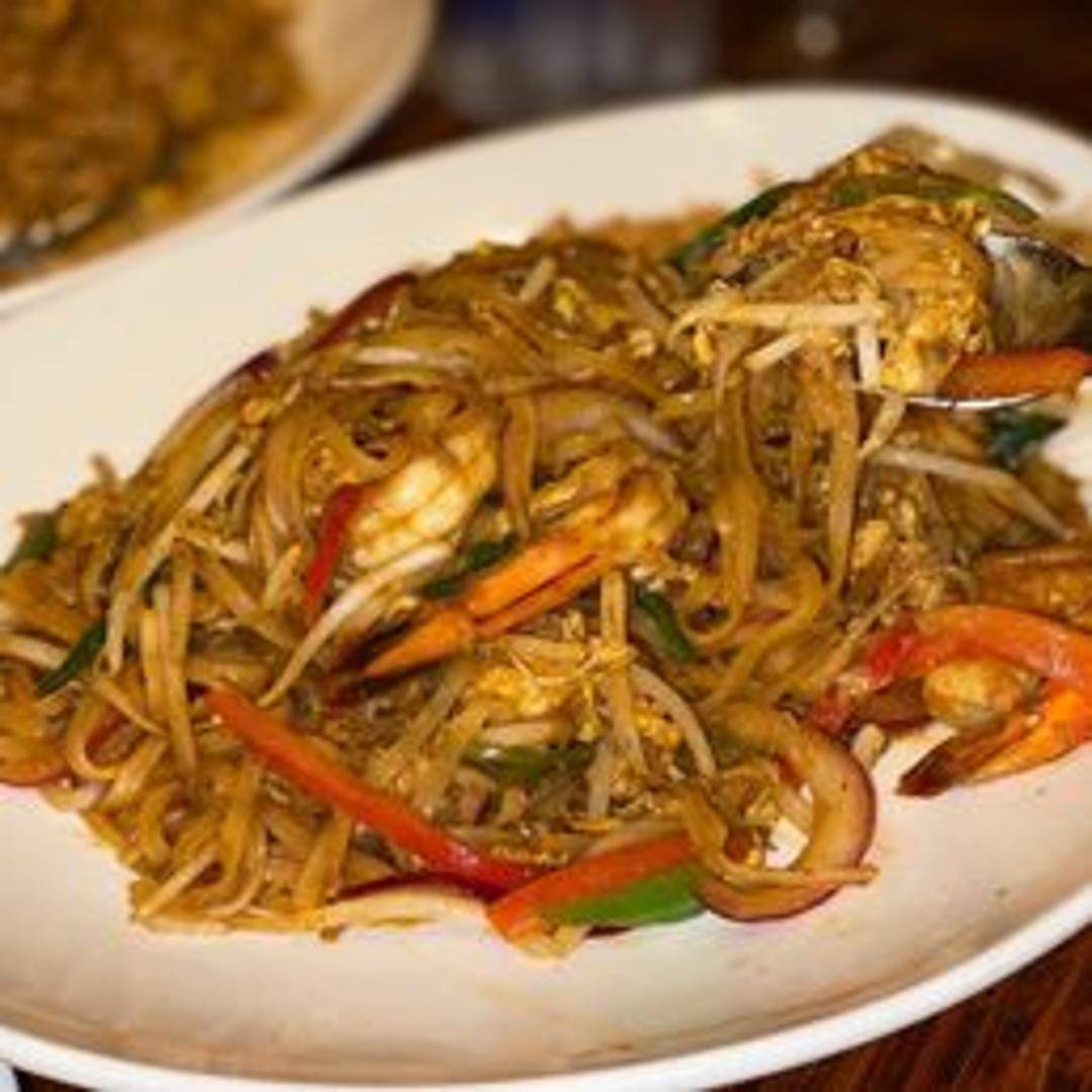 An iconic Thai street food staple, featuring stir-fried rice noodles tossed in a vibrant and tangy tamarind-based sauce. This flavorful dish is typically prepared with scrambled egg, crisp bean sprouts, green onions, and crushed peanuts, often with a choice of protein, offering a harmonious balance of sweet, sour, and savory notes.