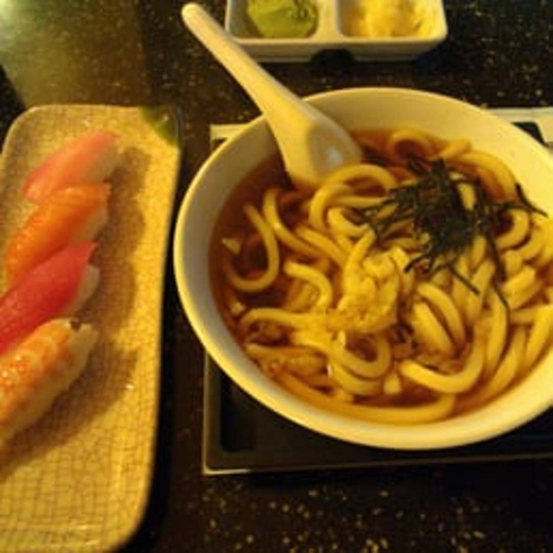 Thick, chewy wheat flour noodles served in a flavorful broth, often with toppings like tempura, vegetables, or meat.