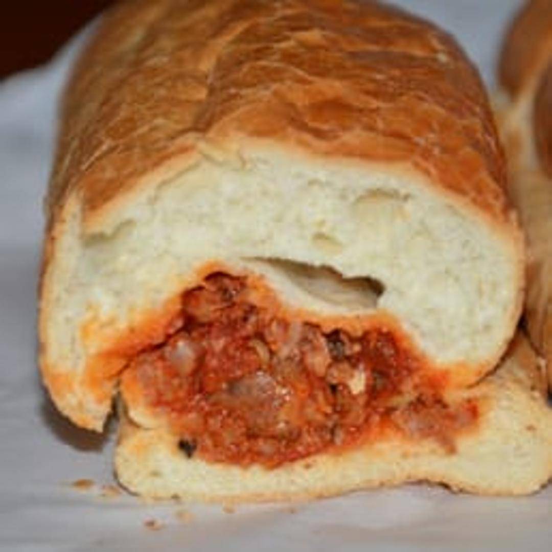 A hearty sandwich featuring savory crumbled meatballs simmered in a rich marinara sauce, served on a freshly baked roll. May include melted cheese and toppings like peppers or onions.
