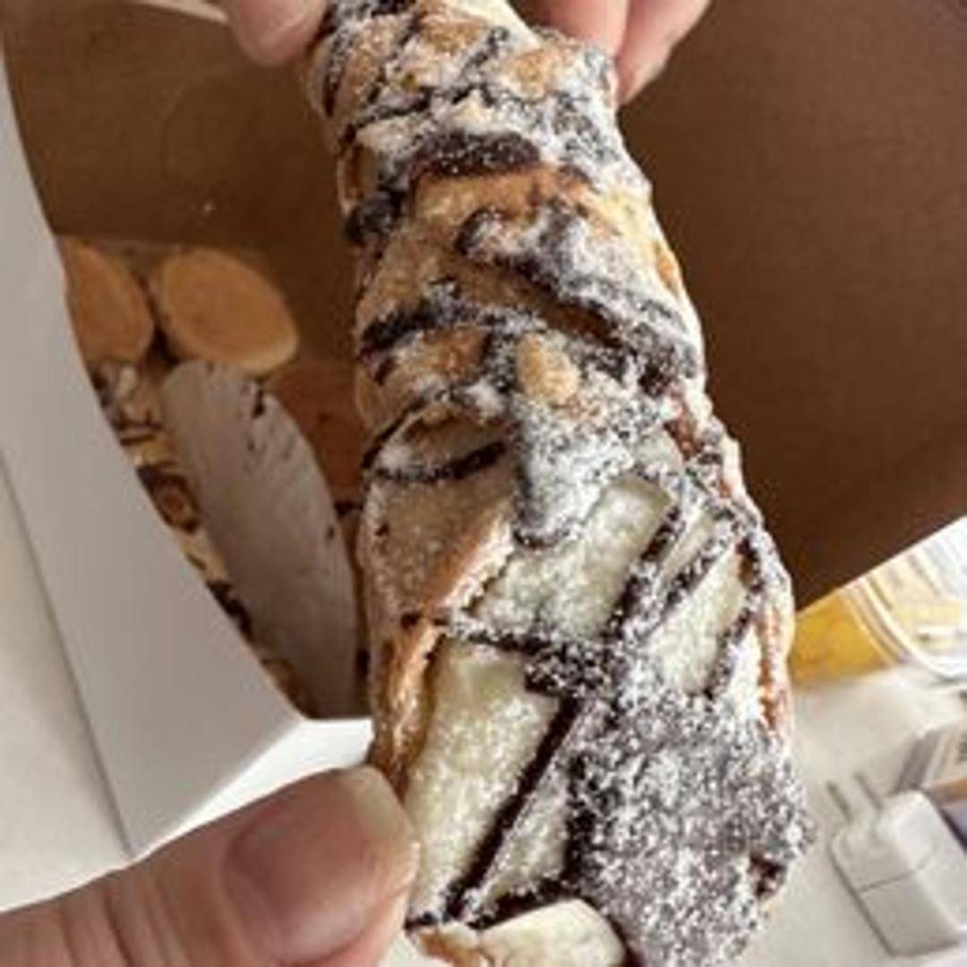 A classic Italian pastry featuring a crispy, tube-shaped shell filled with a sweet, creamy ricotta cheese filling. Often garnished with chocolate chips, candied fruit, or pistachios.