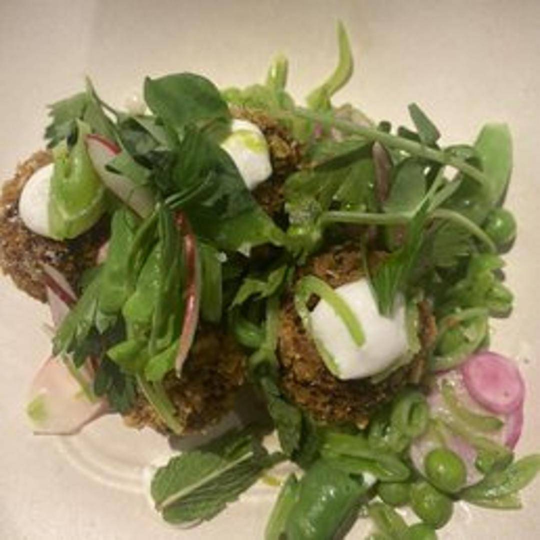 Crispy fried fava bean croquettes, seasoned and served with a complementary aioli.
