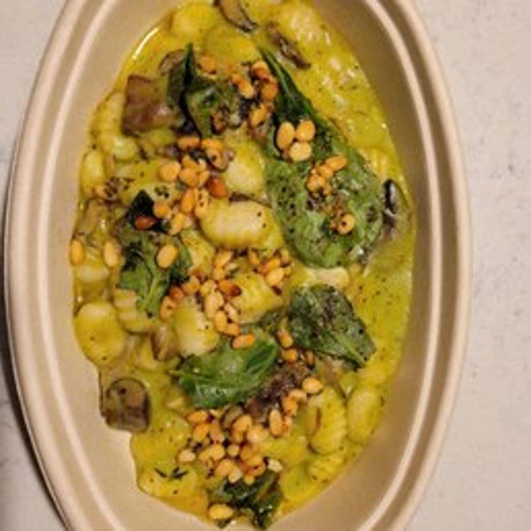 House-made gnocchi tossed with a creamy mushroom sauce, featuring a variety of seasonal mushrooms and herbs.