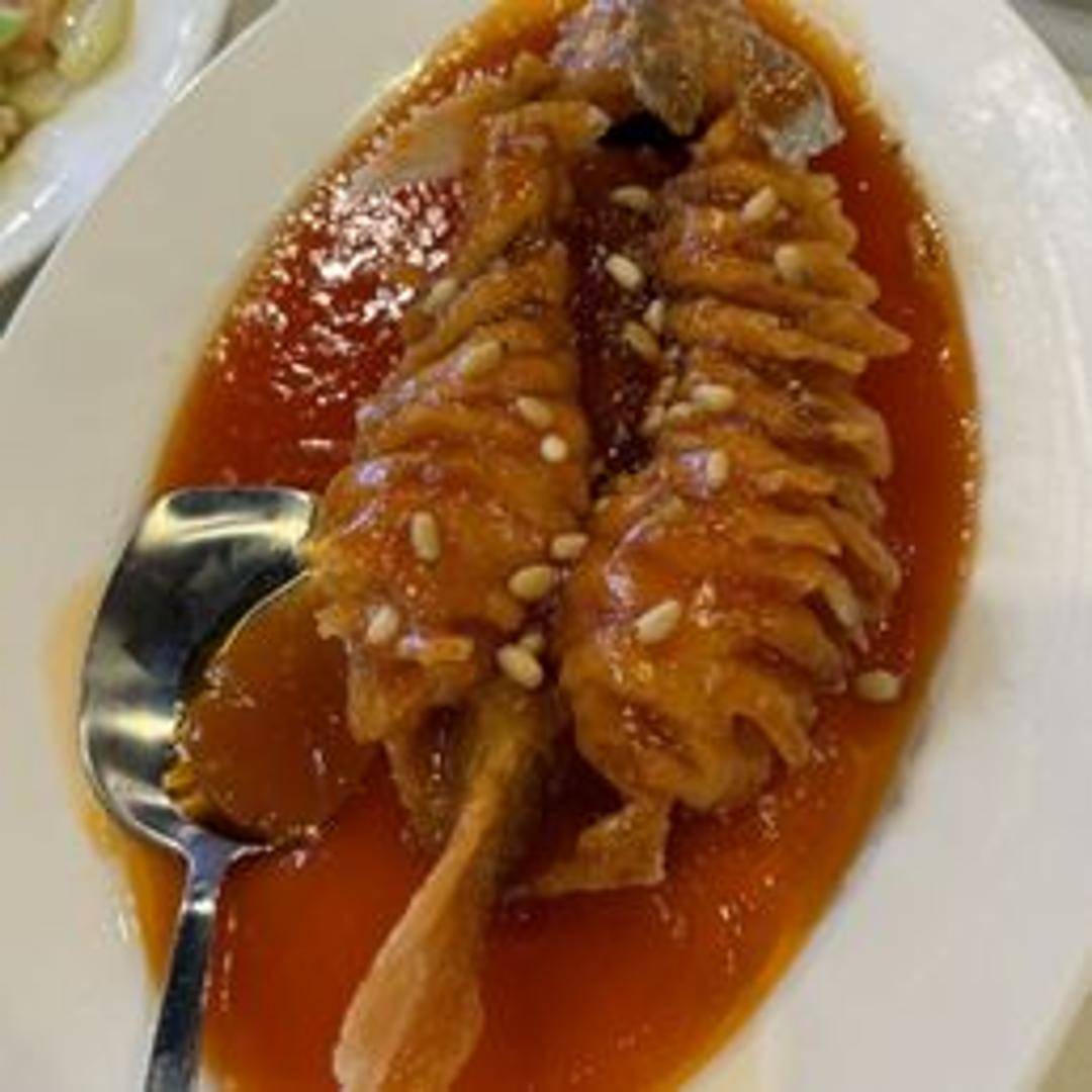 Crispy fried fish fillets served in a vibrant, tangy sweet and sour sauce. Prepared with a medley of colorful vegetables, such as bell peppers, onions, and pineapple. A Go Chi specialty offering a delightful balance of textures and flavors.