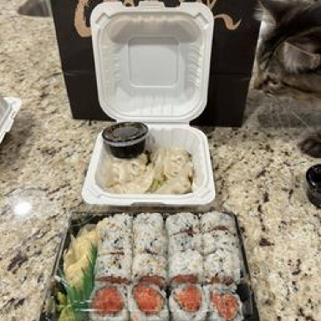 Tuna, salmon, yellowtail, avocado, cucumber, and masago.