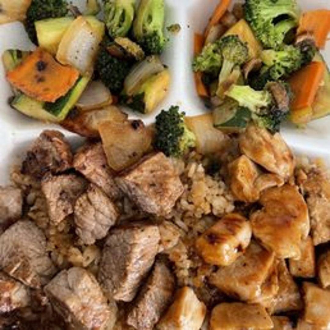 A delicious combination of grilled chicken and steak cooked on a hibachi grill with a savory sauce. Served with your choice of rice and vegetables.