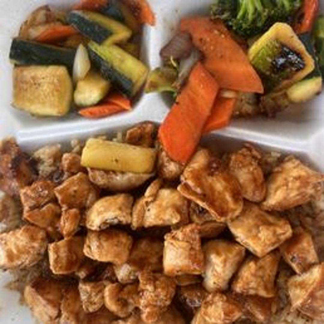 Juicy pieces of chicken grilled on a hibachi grill with a flavorful sauce. Served with your choice of rice and vegetables.