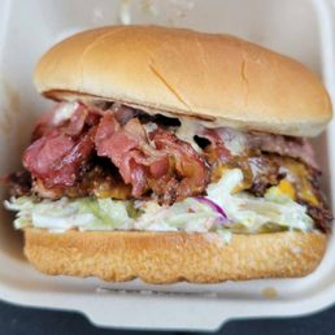 Two juicy beef patties, melted American cheese, crisp lettuce, tangy pickles, and Goldburger's special sauce stacked high on a toasted sesame seed bun.