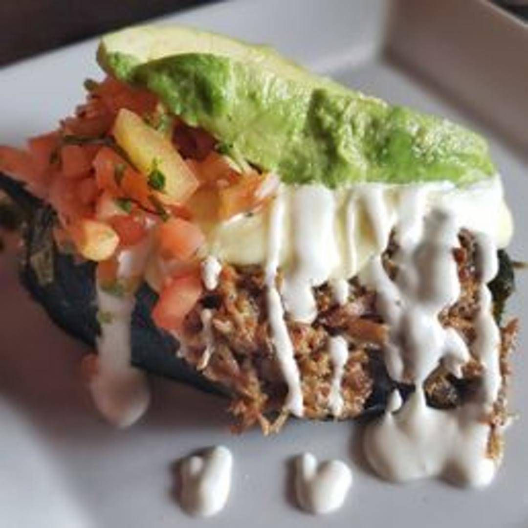 Poblano pepper stuffed with cheese, dipped in egg batter and fried. Served with a flavorful tomato sauce.