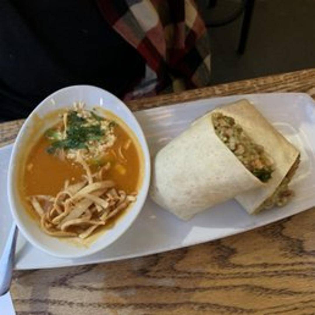 A rich and flavorful soup featuring shredded chicken, tomatoes, onions, garlic, and a blend of traditional Mexican spices. Garnished with crispy tortilla strips, avocado, a dollop of sour cream, and a sprinkle of fresh cilantro.