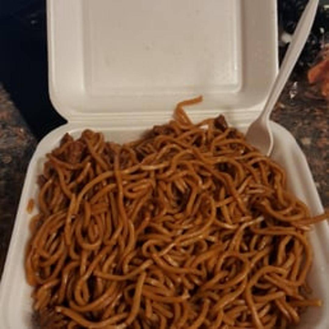 A hearty and popular Chinese noodle dish, featuring tender strips of beef stir-fried with soft lo mein noodles and a colorful assortment of crisp vegetables, including napa cabbage, carrots, and onions. Finished with a savory sauce, this dish offers a rich and fulfilling taste.
