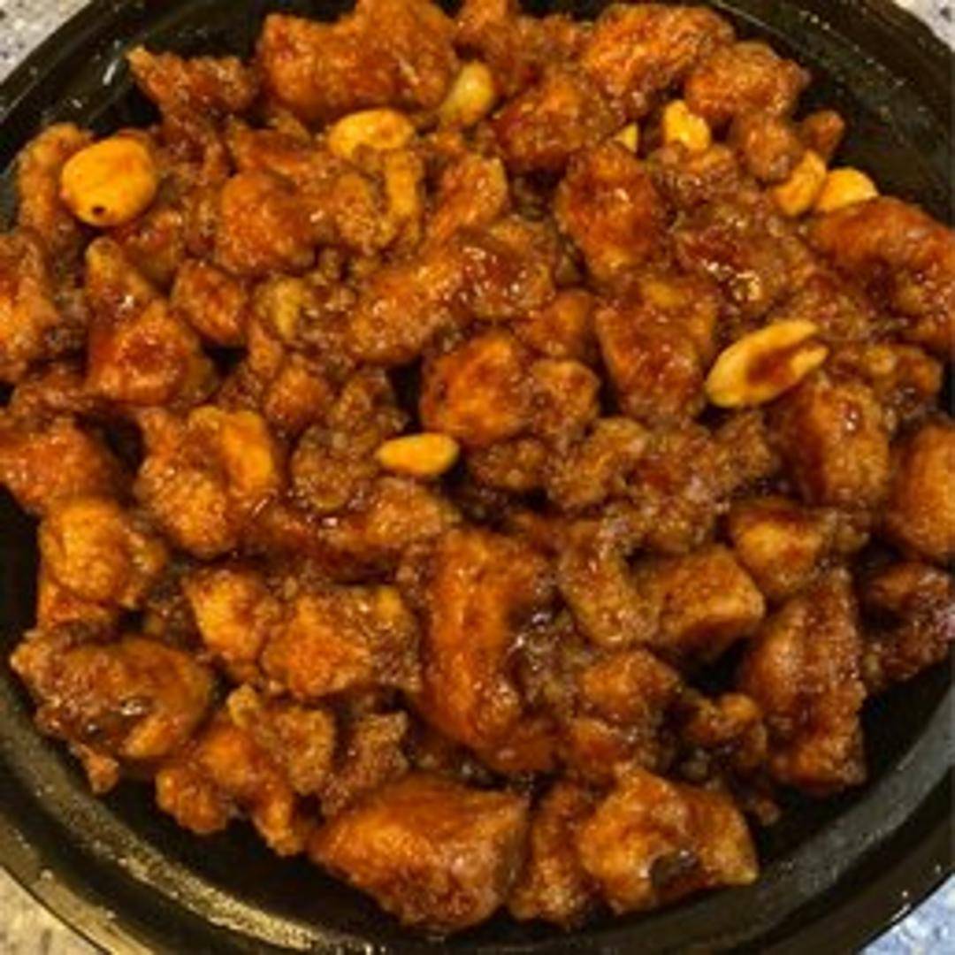 A classic Szechuan-style dish featuring tender diced chicken stir-fried with roasted peanuts, crisp vegetables like bell peppers and zucchini, and a savory, spicy, and slightly sweet sauce. Known for its complex flavor profile and a subtle numbing sensation from Szechuan peppercorns.