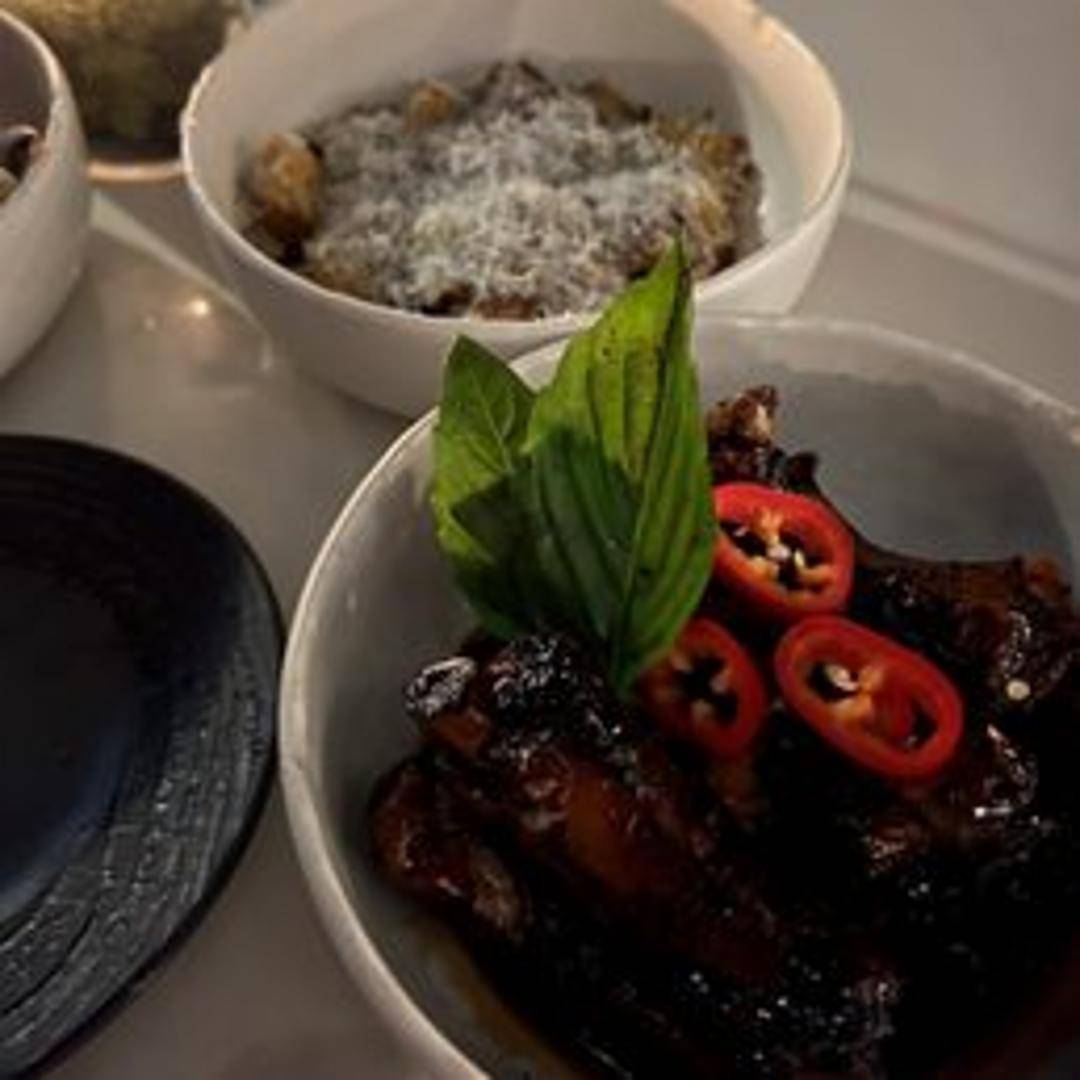 Exquisitely braised beef short ribs, cooked until fork-tender and falling off the bone, boasting a deep, rich, and intensely savory flavor profile. Served atop a velvety bed of creamy polenta or roasted root vegetable puree, and finished with a reduction of its own robust braising liquid, creating a truly comforting and indulgent main course.
