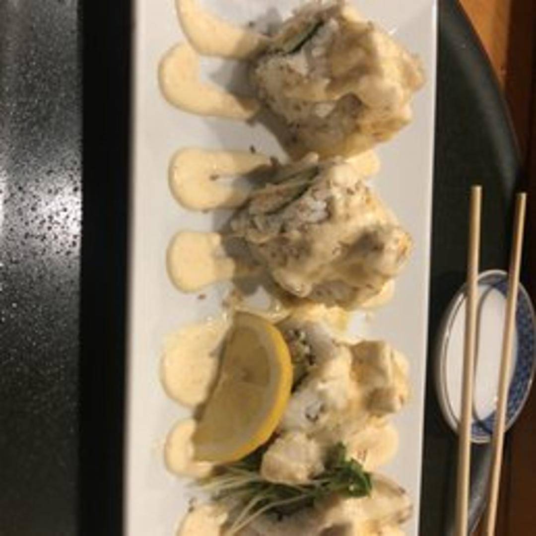 California roll base topped with baked scallop, mayonnaise, and sriracha sauce. Contains avocado, cucumber, and imitation crab meat within the roll.