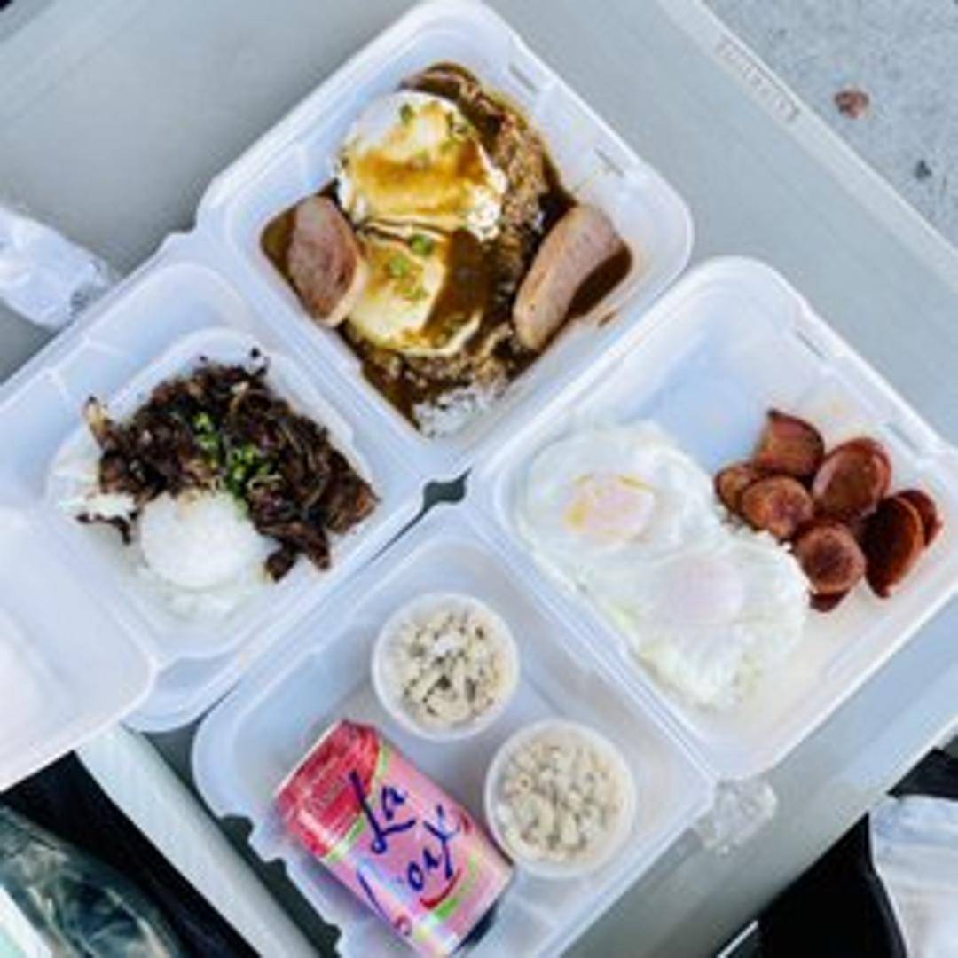 A Hawaiian comfort food classic featuring a bed of steamed white rice, topped with a juicy grilled hamburger patty, a rich and savory brown gravy, and a fried egg.