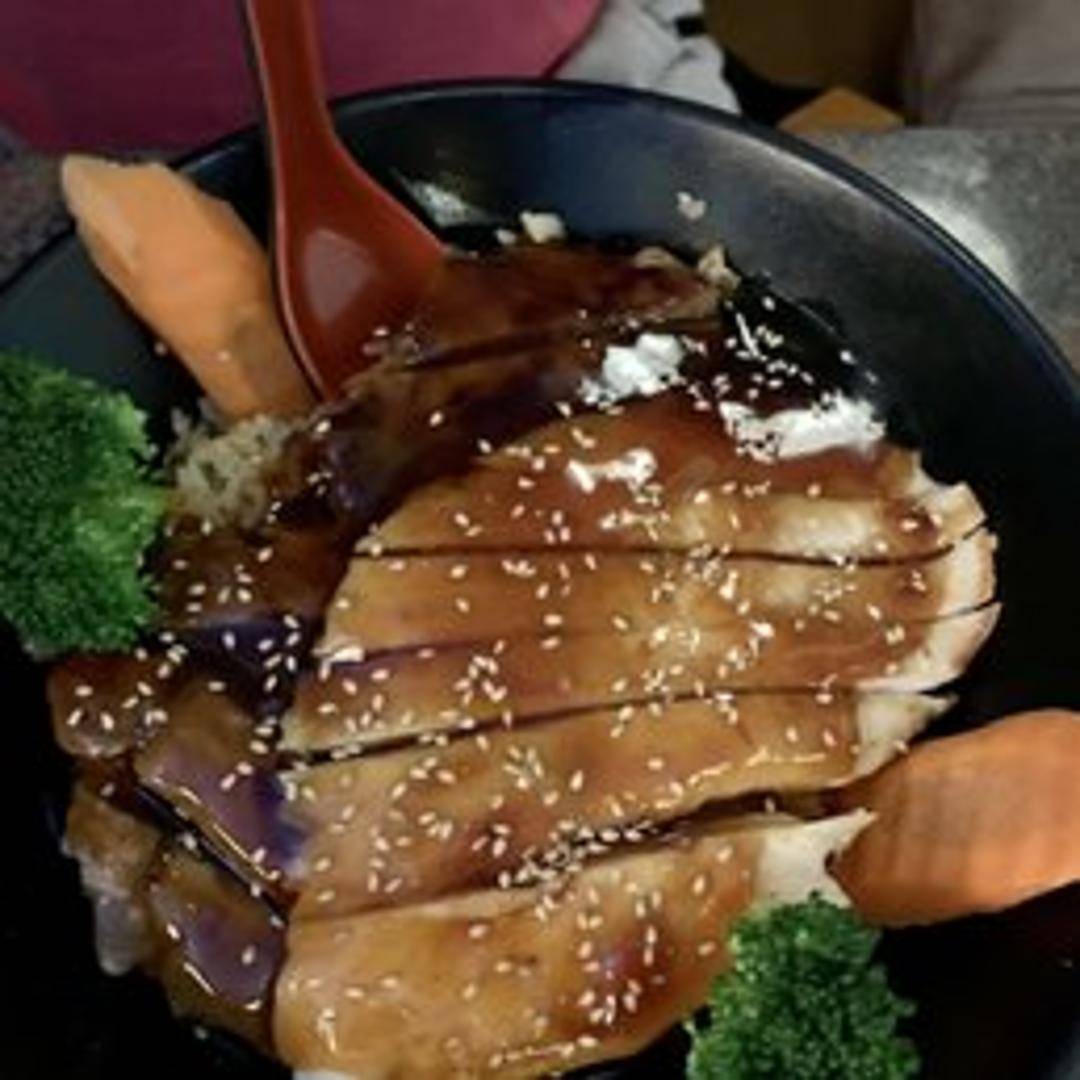 A flavorful bowl featuring your choice of protein (chicken, beef, or tofu) glazed with a sweet and savory teriyaki sauce. Served over a bed of steamed rice and garnished with sesame seeds and green onions. Includes a side of steamed vegetables.