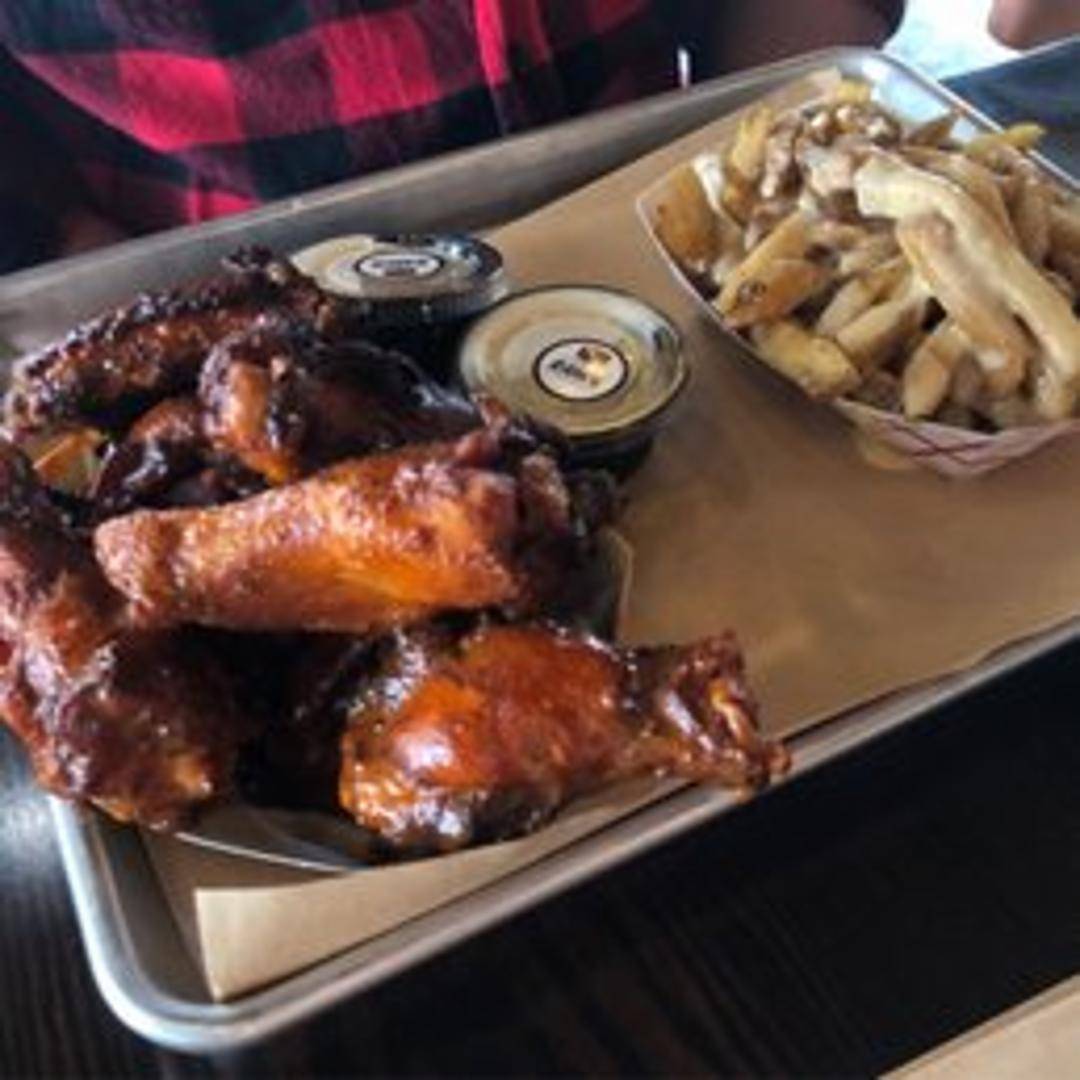Slow-smoked chicken wings, available with your choice of dry rub or BBQ sauce.