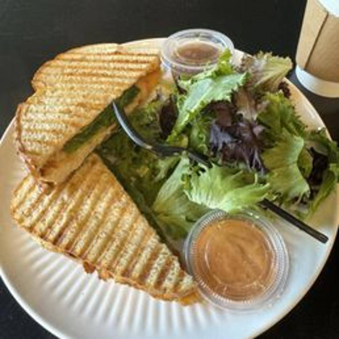 Grilled chicken breast, smoky chipotle sauce, melted cheese, and crisp lettuce pressed in a panini. A flavorful and satisfying lunch option.