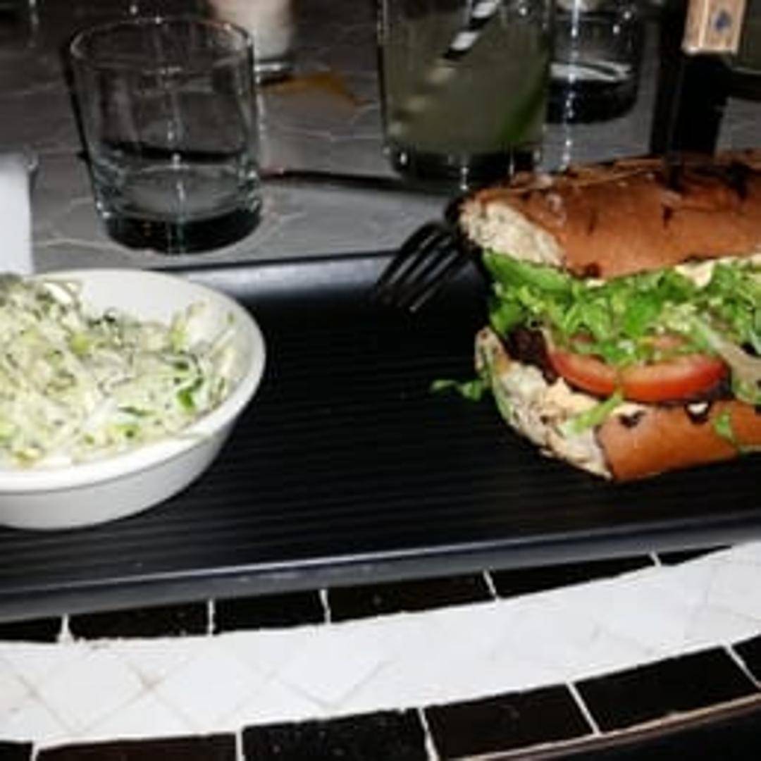 A hearty black bean burger served on a vegan bun with lettuce, tomato, onion, and a special sauce. Often includes avocado or other toppings. Served with a side of fries or a salad.