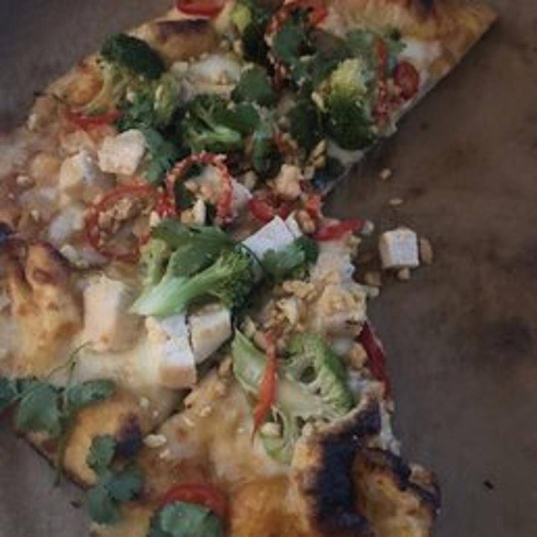 Stir-fried rice noodles with shrimp, chicken, tofu, bean sprouts, and egg in a tangy tamarind sauce. Garnished with crushed peanuts, cilantro, and a lime wedge.