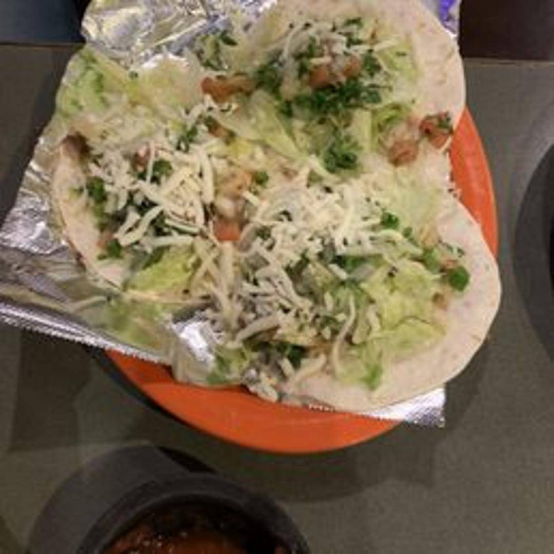 Two soft corn tortillas filled with grilled or fried white fish, shredded cabbage, pico de gallo, and a creamy chipotle sauce. Served with rice and beans.
