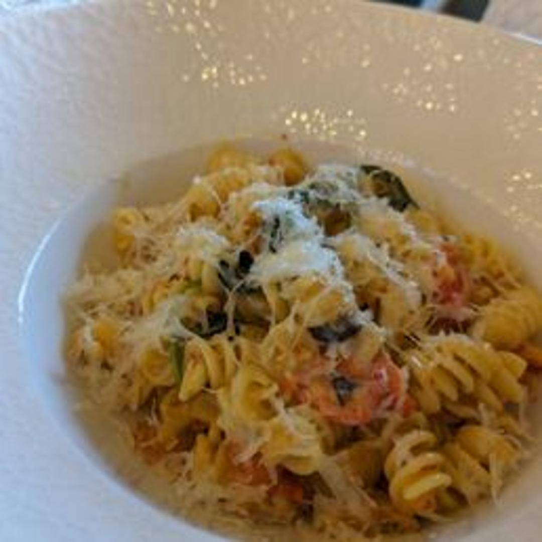 Rotini pasta tossed in a creamy tomato vodka sauce with pancetta and a touch of red pepper flakes. Finished with Parmesan cheese and fresh basil.