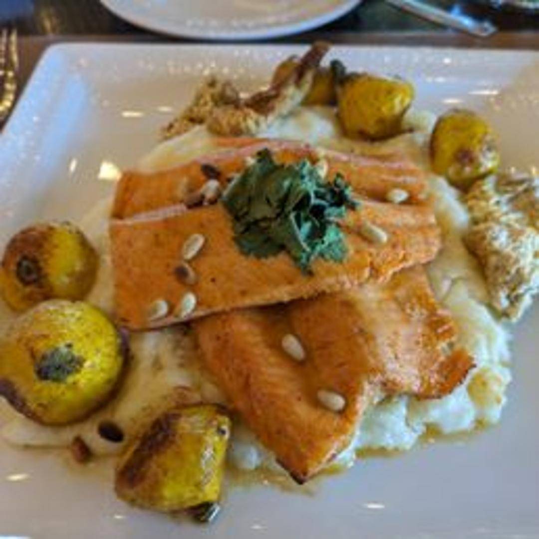 Fresh trout, lightly sauteed with lemon butter and herbs. Served with seasonal vegetables and roasted potatoes.