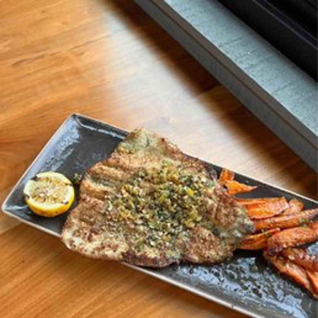 Pan-seared or grilled Rainbow Trout filet, prepared with herbs, spices, and perhaps a lemon butter sauce. Served with complementary side dishes, such as roasted vegetables, quinoa, or mashed potatoes. The trout boasts a delicate flavor and flaky texture.